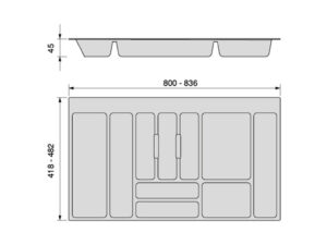 Cutlery organiser Optima M900mm, plastic/anthracite AG (PU1)