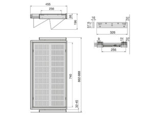 Pull-out shoe drawer Quartz with frame M90 L862–888mm, perforated base, SOFT, steel/titanium