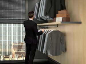 Laekandur (kesk/läbiv) ELEGANCE ümarale riidepuutorule Ø25 mm, H78 mm, teras/antratsiithall strukt