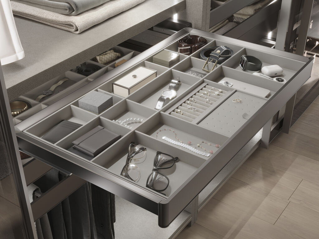 Ehete ja aksessuaaride organiseerimissahtel Quartz, sobib Quartz universaalse raamiga.