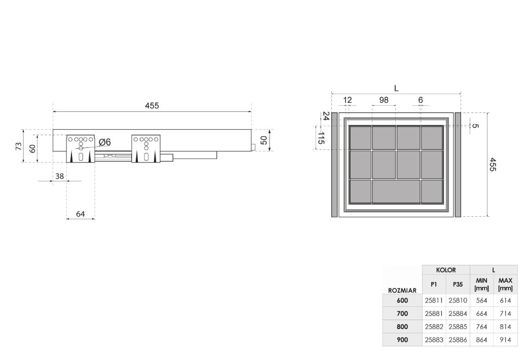 Aksessuaaride sahtel SYMPHONY raamiga, SOFT, L664-714mm (M70) alumiin./valge (PU1)