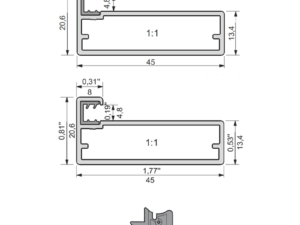 Alumiiniumprofiil KAPA 45×20,6 mm kapiuste valmistamiseks, (anodeering või pulbervärv)