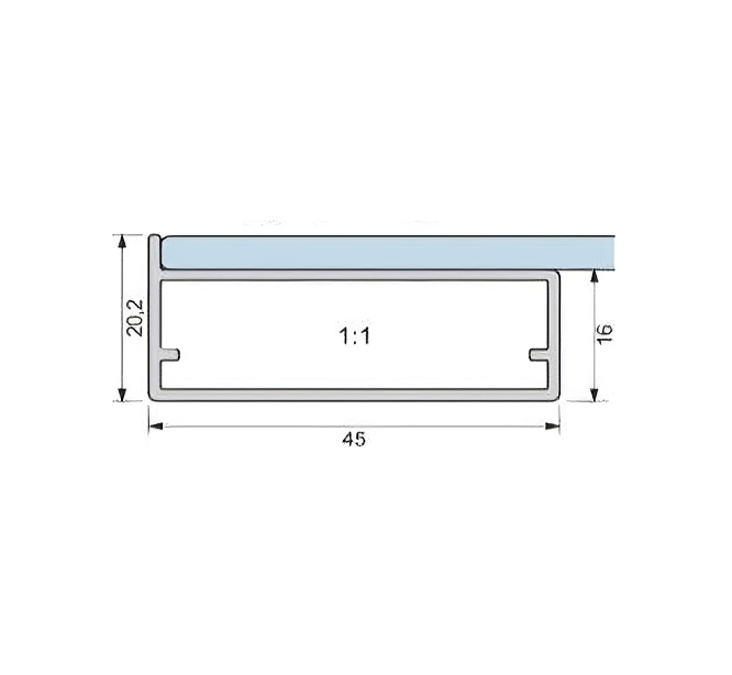 Alumiiniumprofiil LAMBDA 45×20,2 mm kapiuste valmistamiseks (anodeering või pulbervärv)
