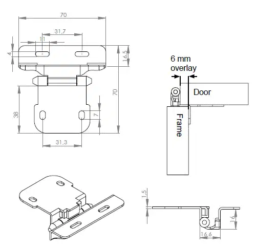 Mööbliratas TWIN ilma pidurita Ø50mm, max 30kg, plaadiga, must