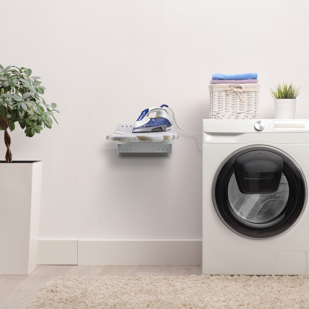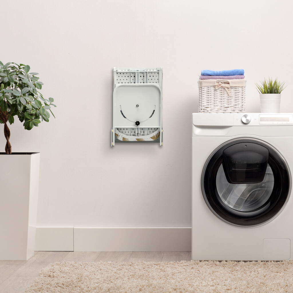 Kokkupandav triikimislaud, mida saab 180º pöörata, mööbli või seina külge kinnitamiseks.