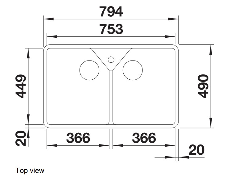 Köögivalamu Blanco VILLAE Farmhouse Double alt monteeritav 794×490, keraamiline/valge