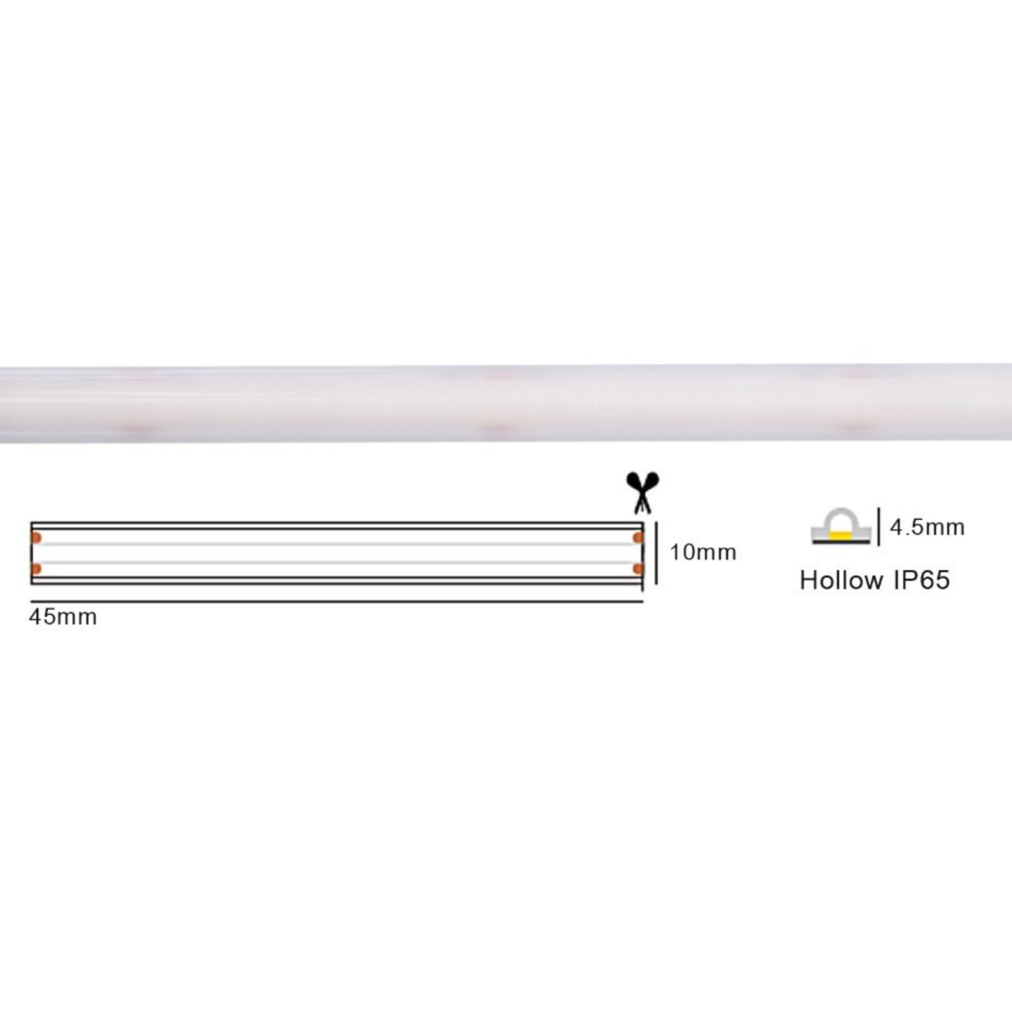 LED riba AC220-230V 12W/m 286 led/m 10 mm 1100 lm/m Ra80 IP65, soe 3000K (✂45mm)
