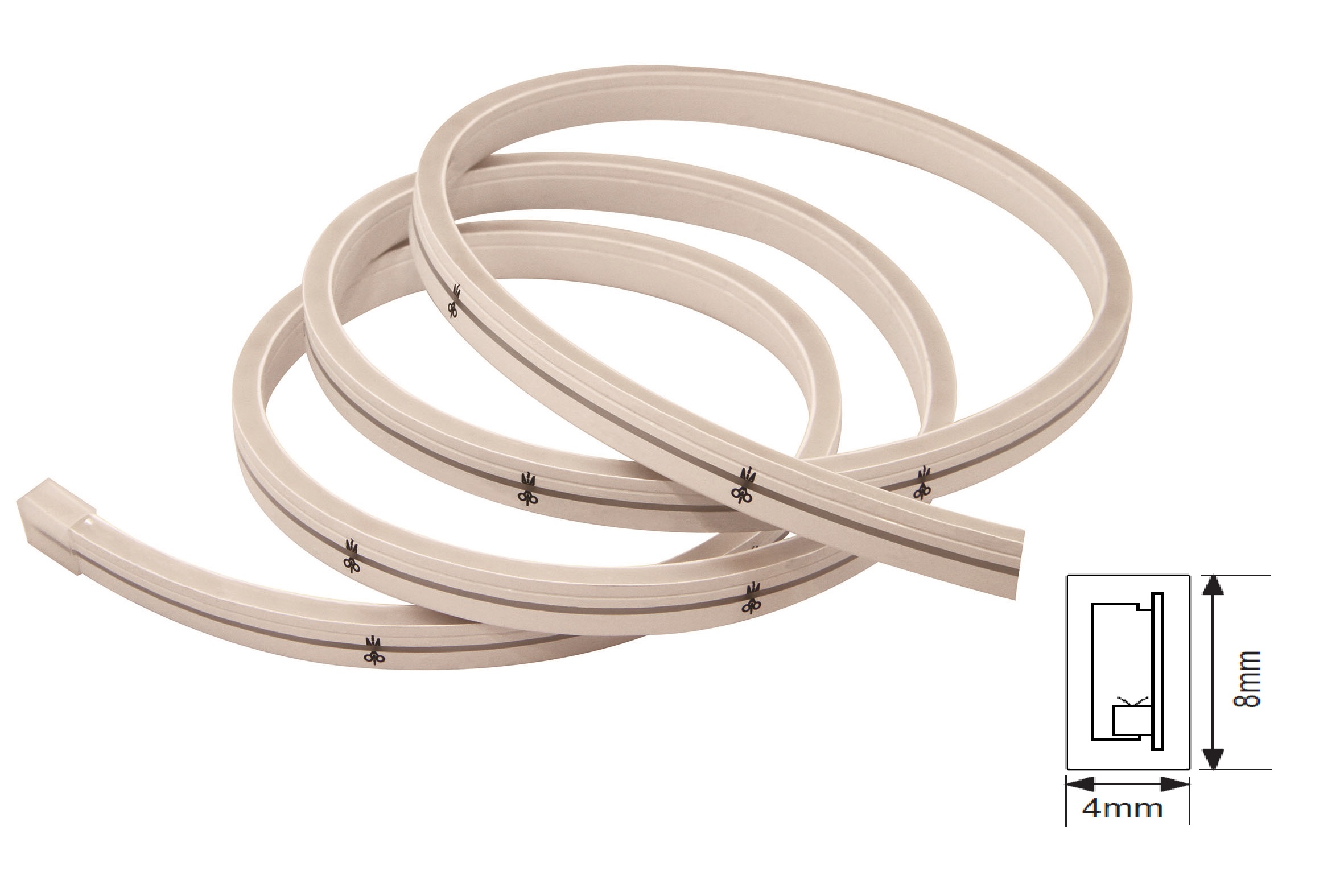 NeonFlex led riba 4x8mm 8W/m 3000K /soe 224 led/m L3000 mm IP67, kahes otsas 3m juhe