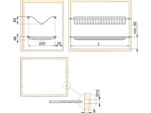 Ideaalne tavalise köögimööbli jaoks. Ühildub 800 mm laiuste moodulitega ja on reguleeritav plaatidele paksuses 16–18 mm.