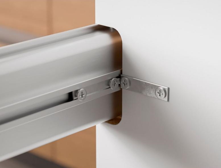 Kinnitusnurk (kronstein), mida kasutatakse Gola süsteemi horisontaalsete profiilide turvaliseks kinnitamiseks kapi raami külge.