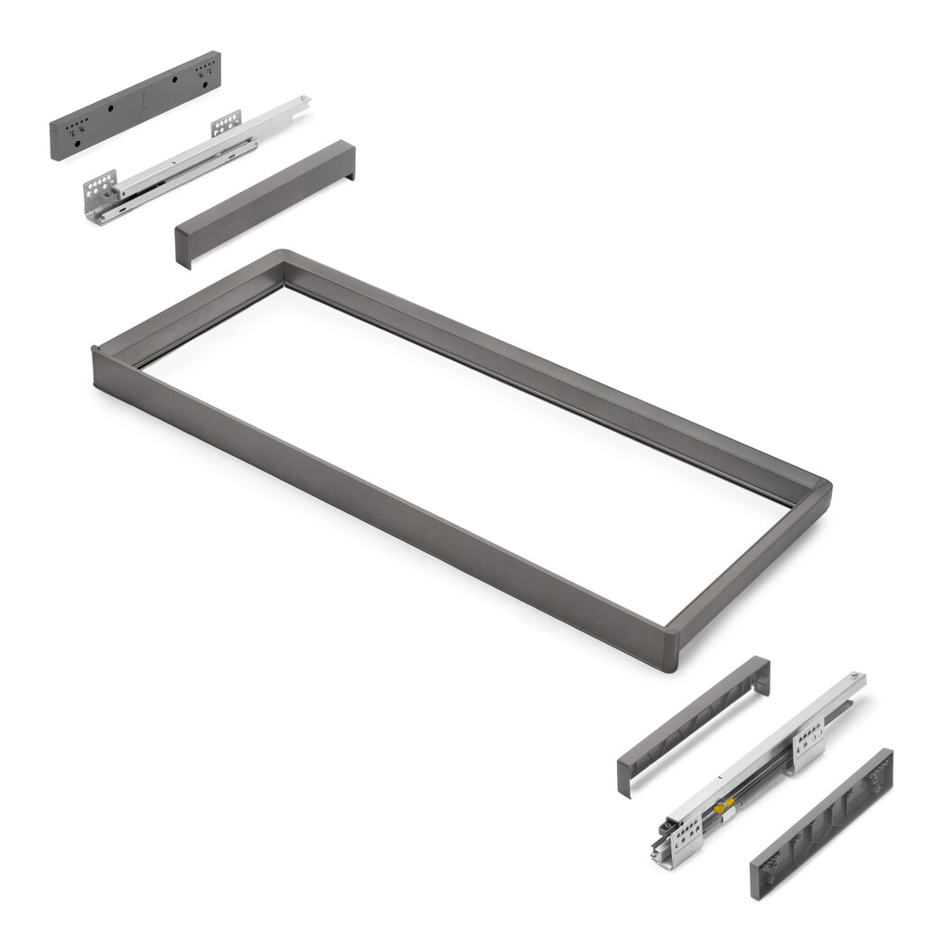 Pehme sulgemisega ja täielikult väljatõmmatav universaalne raam kapile, Quartz seeria toode.