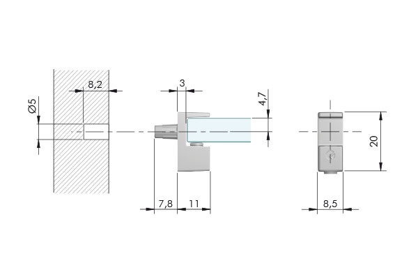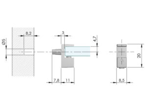 Riiulitugi GRACE klaasriiulitele paksusega 8 mm.