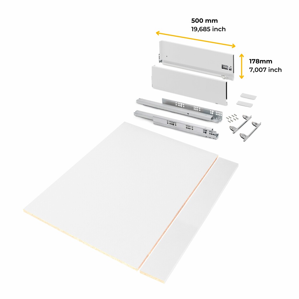 Komplekti kuulub: 1 paar juhtsiine, 1 komplekt külgpaneele, alumine ja tagumine paneel, 1 komplekt eesmise sahtli konkse, kruvid.