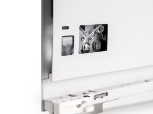 Sellel on 3D esipaneeli reguleerimise võimalus: vertikaalne ±2 mm eksentriku abil, horisontaalne ±1 mm, kalle -1,5/+4 mm.