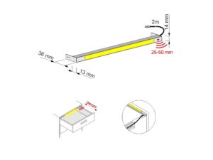 Sahtlivalgusti POLARIA 5,5W 12V L564mm IR sensoriga, soe 3000K, juhe 2m, alumiinium/must