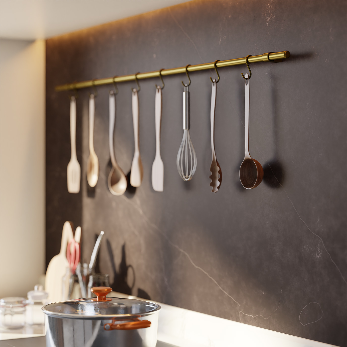 Seinareeling komplekt Ø 16mm L600mm, 6 konksu, alumiinium/kuldne matt
