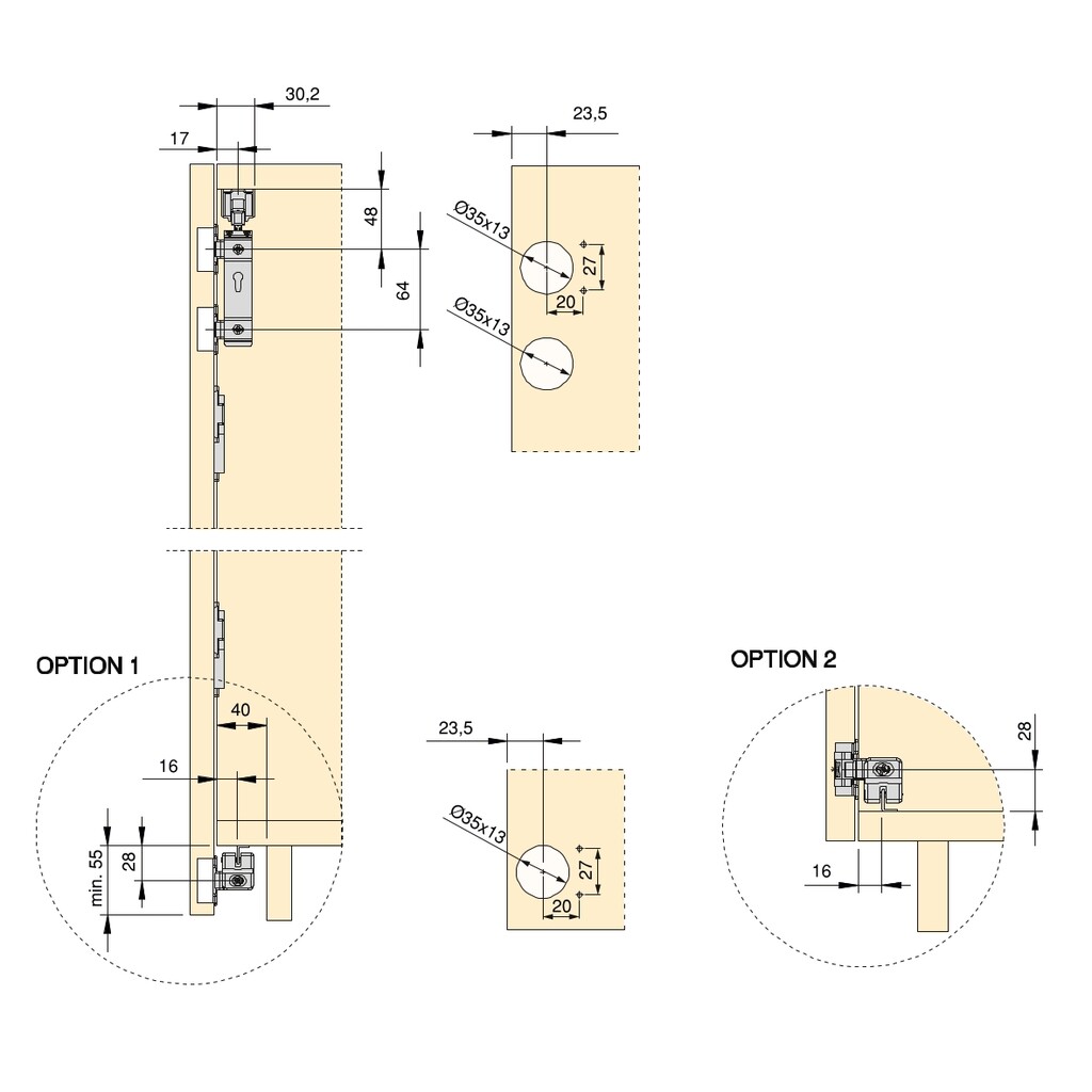 Võimaldab paigaldada nii ilma põrandaliistuta (nähtav L-profiil) kui ka põrandaliistuga (peidetud L-profiil kapi põhja all) kappi.