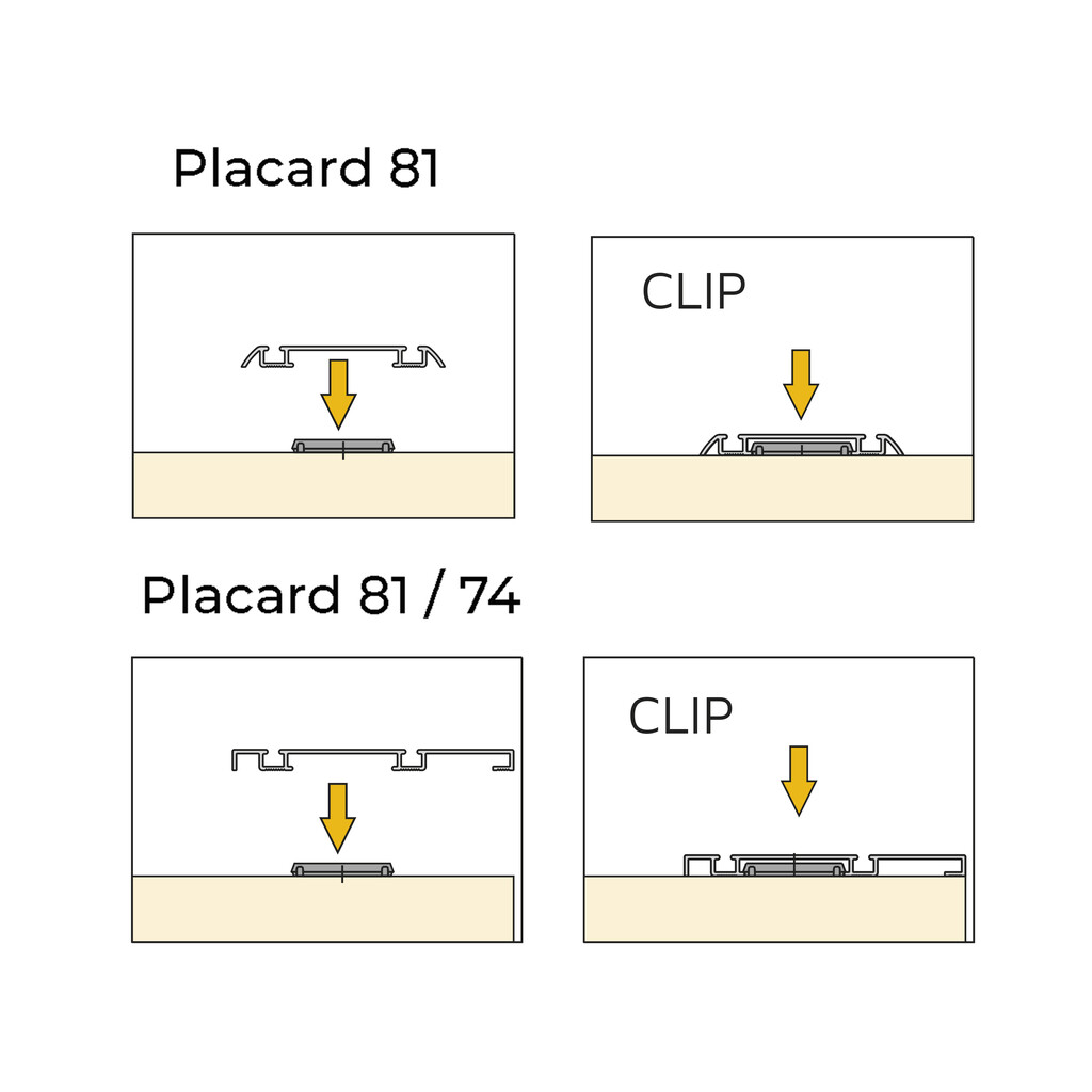 Placard 74 ja Placard 81 alumisele juhtsiinile sobilik kinnitusklamber.