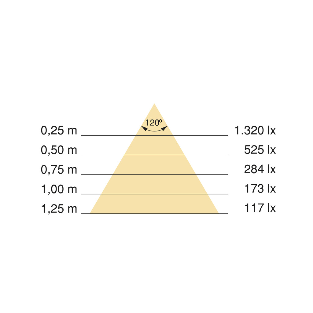 Valgustugevus 560 lm/m, valgusnurk 120°