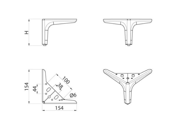 Mööblijalg 3D DNO-701, H120mm, teras/ kuldne