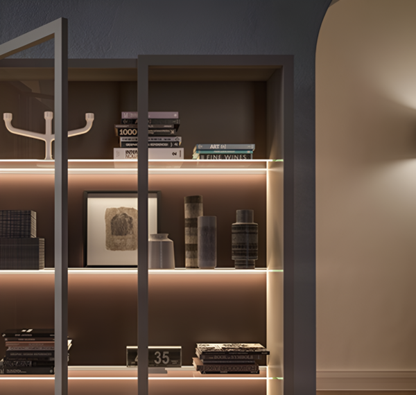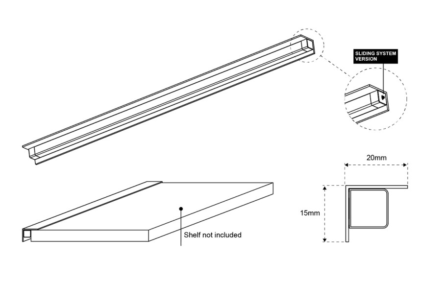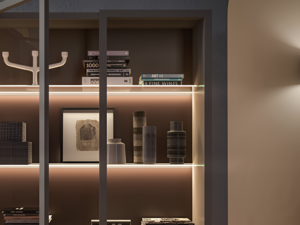 Twilight on alumiiniumist ja polükarbonaadist lineaarne profiil, mida saab paigaldada kahepoolse teibiga puidust või klaasist riiulitele. Pimestamisvastane serv tagab optimaalse visuaalse mugavuse.