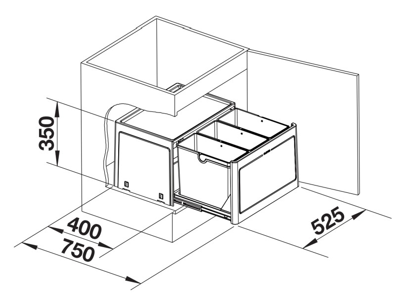 Prügisüsteem BLANCO BOTTON Pro 60/3, lihtne avada koos esiuksega.