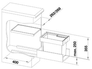 Paigalduskõrgus 355 mm, paigaldussügavus 400 mm, sahtlisiinide tõttu on vajalik sisemine kapi sügavus 450 mm.