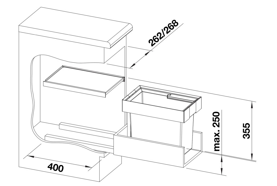 Prügisüsteem BLANCO Flexon II 30/1 300mm kapi sahtlisse, ämbriga 1x19L