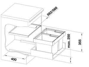 Prügisüsteem BLANCO Flexon II 60/2 600mm kapi sahtlitesse, 2 ämbriga 1×19+1x30L