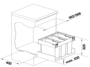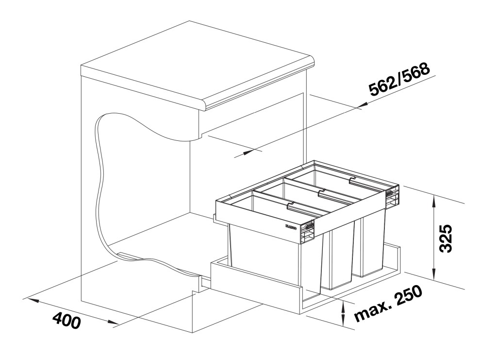 Prügisüsteem BLANCO Flexon II LOW 60/3 600mm kapi sahtlisse, 3 ämbriga 3x15L