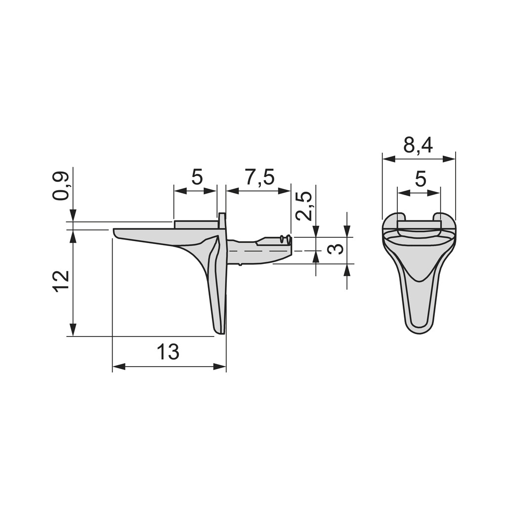 Riiulikandur lapik Ø5 mm A19 mm C3 mm B8 mm, teras/nikkel (PU 1000)