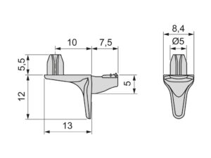 Riiulikandur Beak puitriiulitele Ø5 L13 mm, tsink/must (PU 1000)