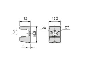 Riiulikandur Evo klaasriiulitele 6-8 mm Ø4 L12 mm, tsink/must (PU 1000)