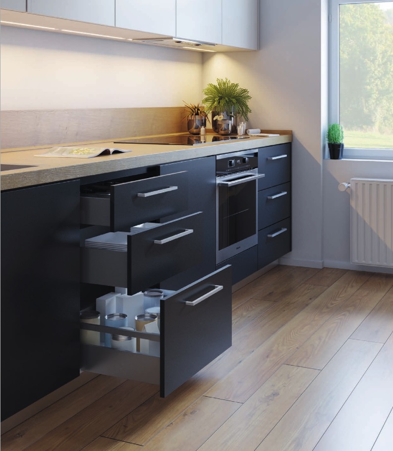 Sünkroniseeritud 100% avatavad siinid, pehme sulgumisega ja kandevõimega 40 kg.
