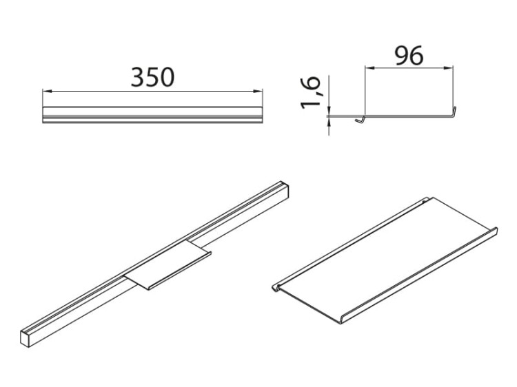 Seinareelingu REL-570 ülemine riiul, 350 x 96 x 1,6mm, alumiinium/matt must