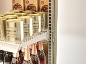 Toitesiin FLAT-TRACK valget värvi plastkorpusega, mõeldud riiulite professionaalseks ja esitlevaks valgustamiseks ilma nähtavate või segavate kaabliteta.