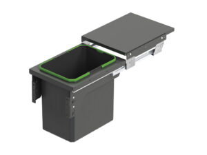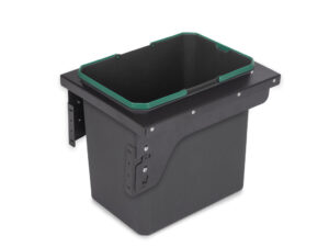 Eemaldatav, käsitsi väljatõmmatav prügikast külgkinnitusega kapimooduli sisse, majapidamisjäätmete sorteerimiseks ja eraldamiseks.