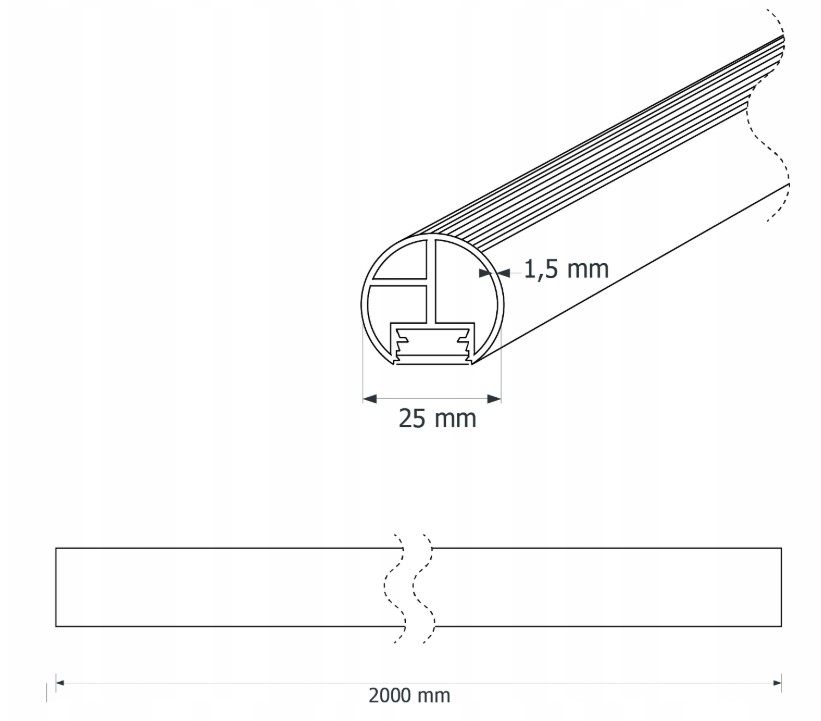 Ümar LED riidepuutoru Ø25mm, L2000mm, alumiinium/hallikas beež struktuurne