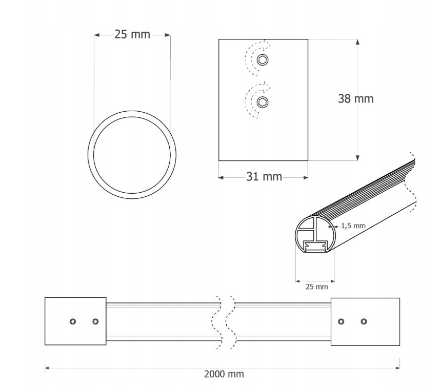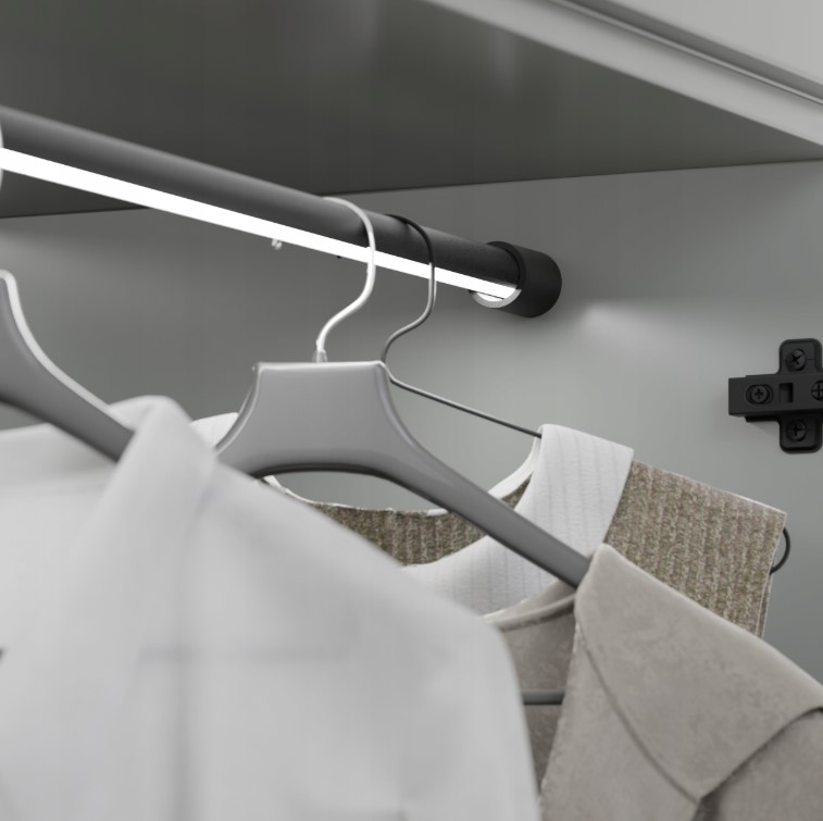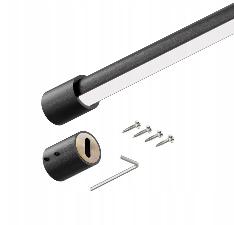 Ümar LED riidepuutoru SMART LED Ø25mm, L2000mm, 2 otsakandurit (kraeta), alumiinium/must struktuur