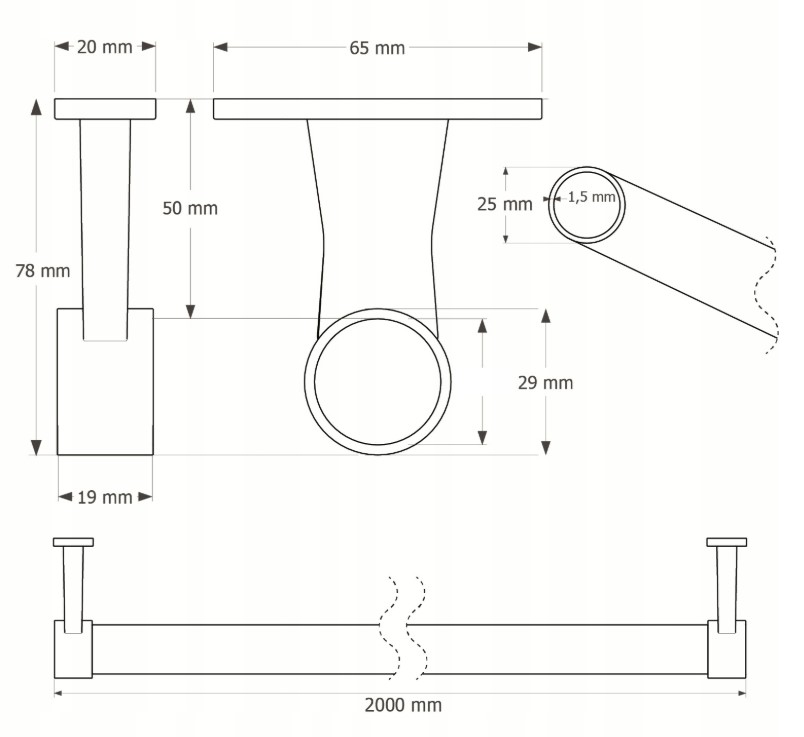 Ümar riidepuutoru Ø25mm L1480 mm, teras/rooste struktuur