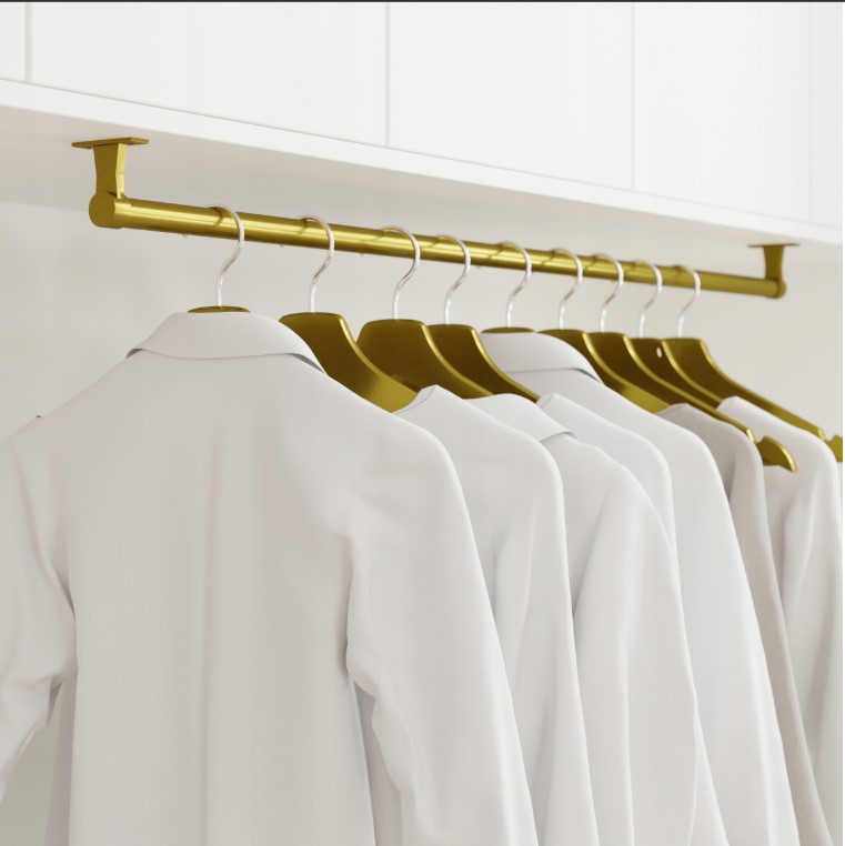 Ümar riidepuutoru ELEGANCE Ø25mm, L2000mm, 2 laekandurit, teras/matt kuldne
