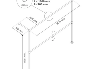 Ümar riidepuutoru PRO Ø25mm komplekt K203xL102 cm, teras/must matt