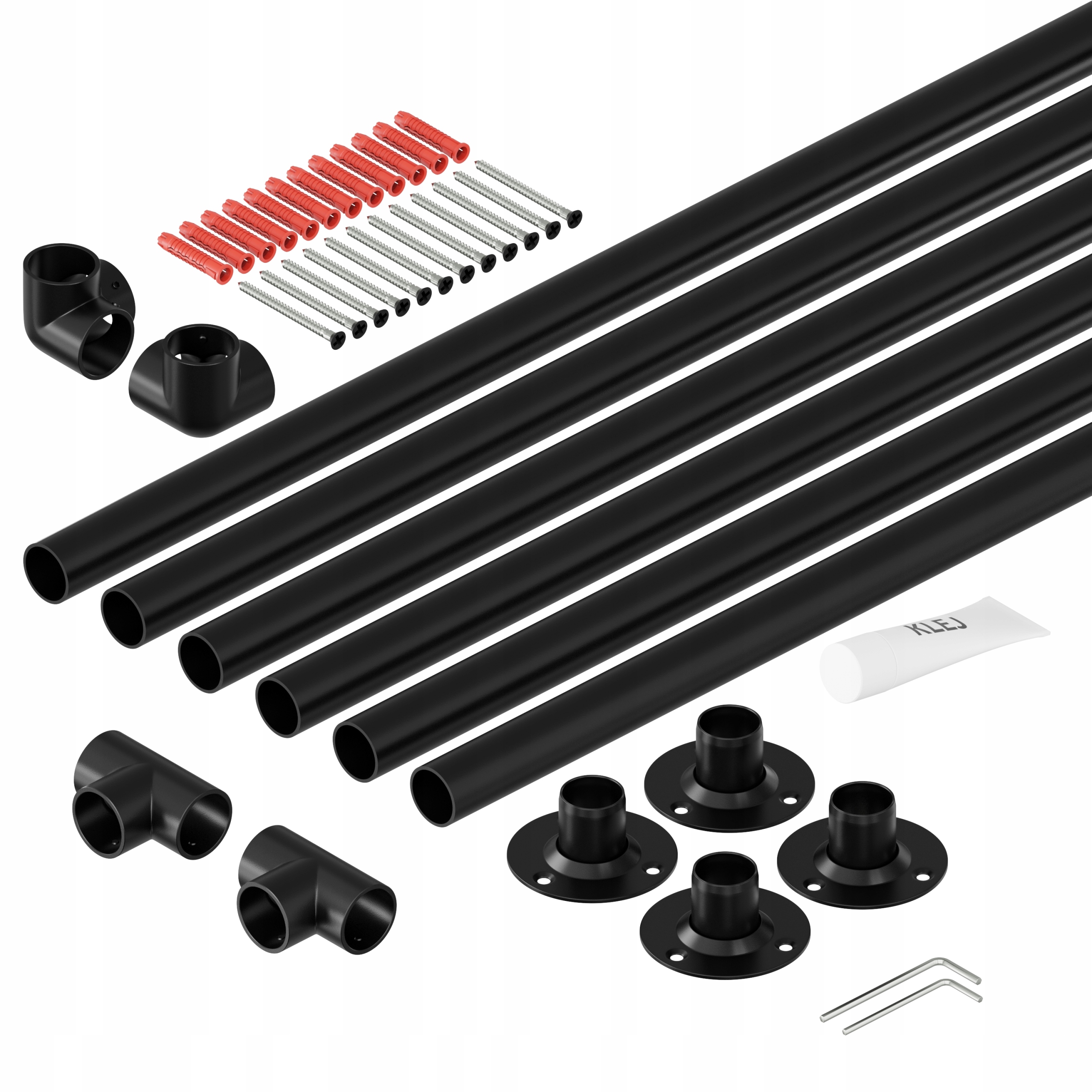 Ümar riidepuutoru PRO Ø25mm komplekt K203xL150 cm, teras/must matt