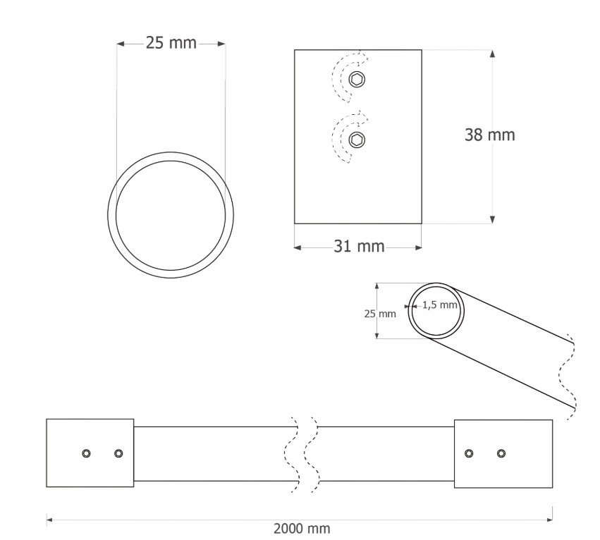 Komplektis: 1 riidepuutoru, 2 kraeta ümmargust otsakandurit, kinnituskruvid.