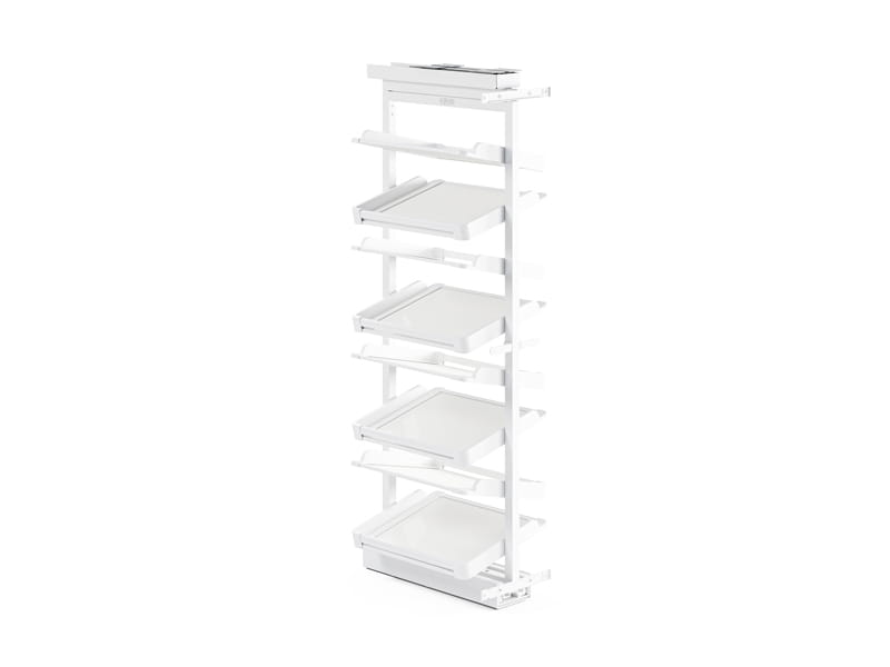Väljatõmmatav jalatsiriiul SYMPHONY, H1620-1820mm, S542mm 10 riiuliga, teras/valge