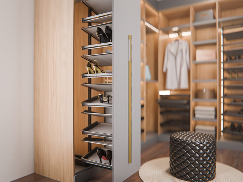 Väljatõmmatav jalatsiriiul HACK, min H655 mm/min D450mm, parem, SLOW, kivihall