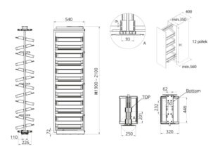 Väljatõmmatav jalatsiriiul SYMPHONY, H1900-2100mm, S542mm 12 riiuliga, teras/antratsiit