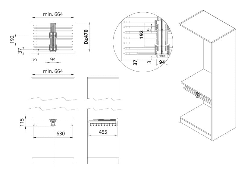 Väljatõmmatav kahepoolne pükstehoidel laekinnitusega SYMPHONY, 20-paarile alumiinium/antratsiit(PU1)