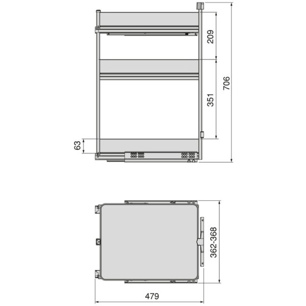 Väljatõmmatavad riiulid HARMONY, 3-riiuliga, H706mm, L479mm, S368mm, teras/antrasiit