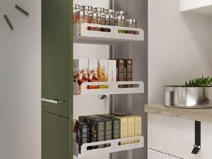 Väljatõmmatav pudelihoidik 3-riiuliga SUPRAMAX M200mm /H676mm SOFT, teras/kroom